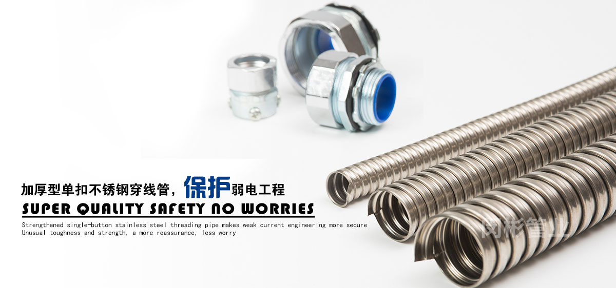 除此之外,公司還致力于金屬軟管接頭,普利卡管,普利卡接頭,不銹鋼穿線管的銷售。公司本著品種多、質量優、服務好的宗旨,不斷開發、創新產品,以滿足日益發展的市場需要。產品主要包括:金屬軟管接頭 ,橋架接頭,塑料軟管接頭,AD接頭,不銹鋼接頭,普利卡接頭,包塑金屬軟管,不銹鋼軟管,不銹鋼編織軟管,普利卡軟管,尼龍軟管,塑料波紋管,尼龍拖鏈等機床配件。產品廣泛應用于建筑、機床、鐵路、車輛、化工、汽車、監控、建筑裝修、建筑裝飾、建材、裝修裝飾等行業。上海閔彬管業有限公司高質量包塑管在實際使用中多家工程單位的認可、使用與推廣。